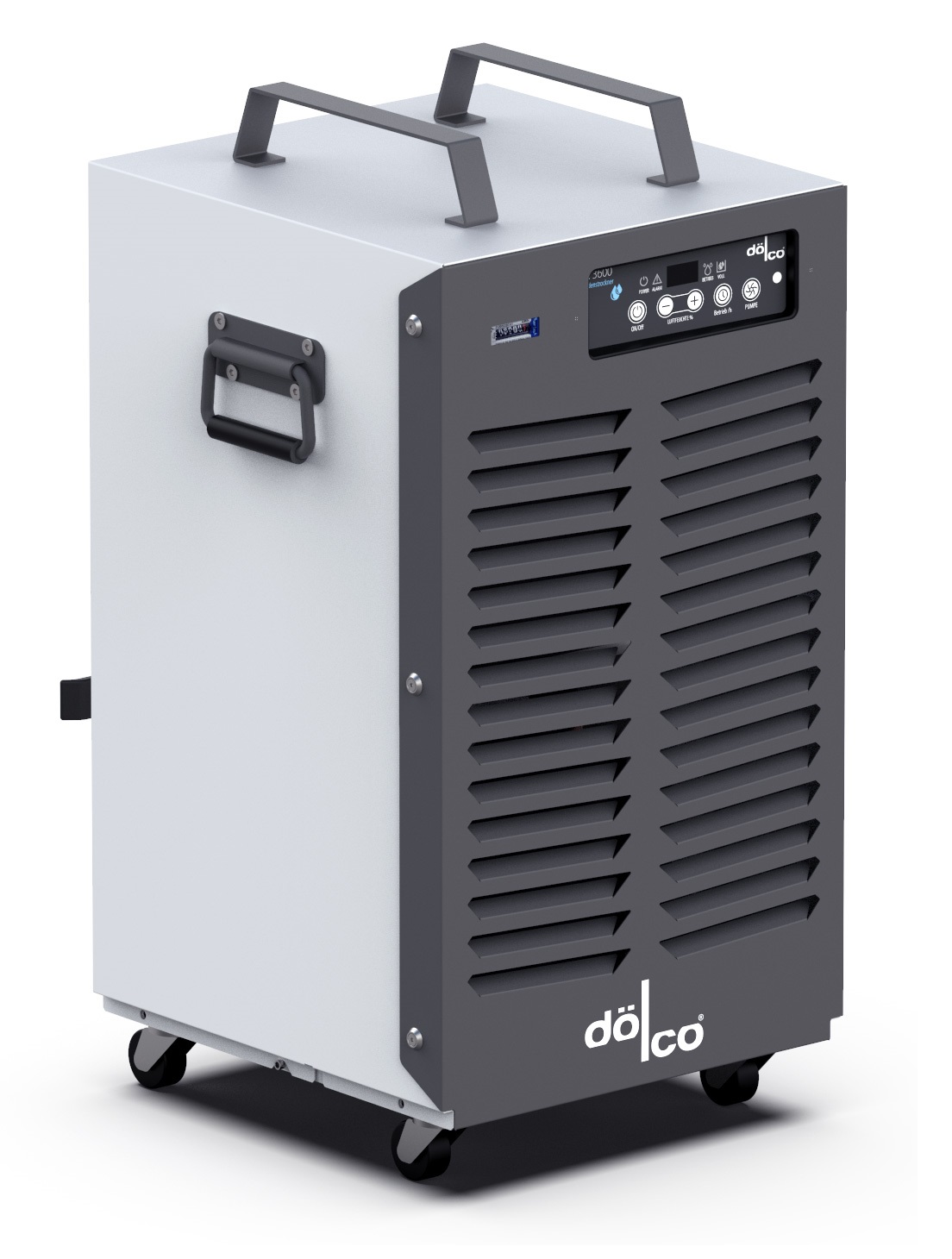 DÖLCO LE-3600 Kondenstrockner ist ein sehr leichtes und robustes Gerät. Ein Axialgebläse mit einer Luftumwälzung von 450 m³/h, saugt feuchte Raumluft an und leitet sie durch einen gekühlten Verdampfer, wodurch sich Kondenswasser bildet. Das Kondenswasser wird in einem Behälter innerhalb des Gerätes gesammelt. Bei vollem Kondensatbehälter erfolgt die Abschaltung des Gerätes berührungslos über einen Magnetsensor. Die Anbringung eines Kondensatablaufschlauchs direkt am Behälter ist möglich. Die durch den Prozess entstandene Warmluft wird in den Raum abgegeben, wo sie erneut Feuchtigkeit aufnehmen kann.